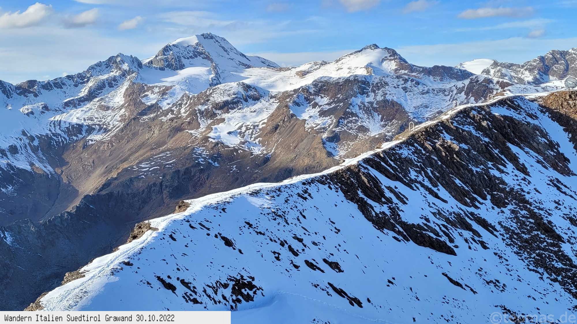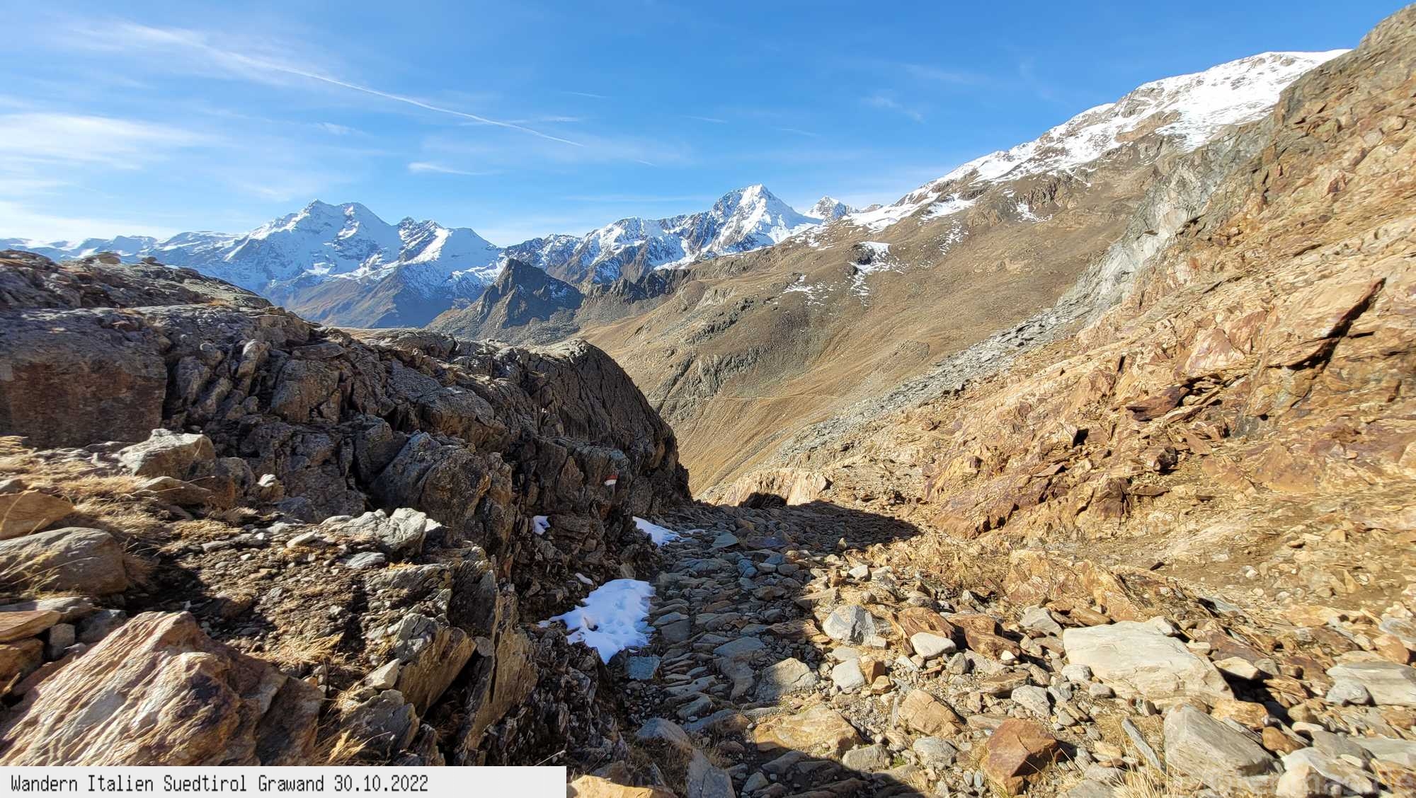 Eine Bergwanderung im Herbst von Kurzras auf dem Wanderweg Nr.3 über die Schöne Aussicht Hütte auf die Grawand und mit