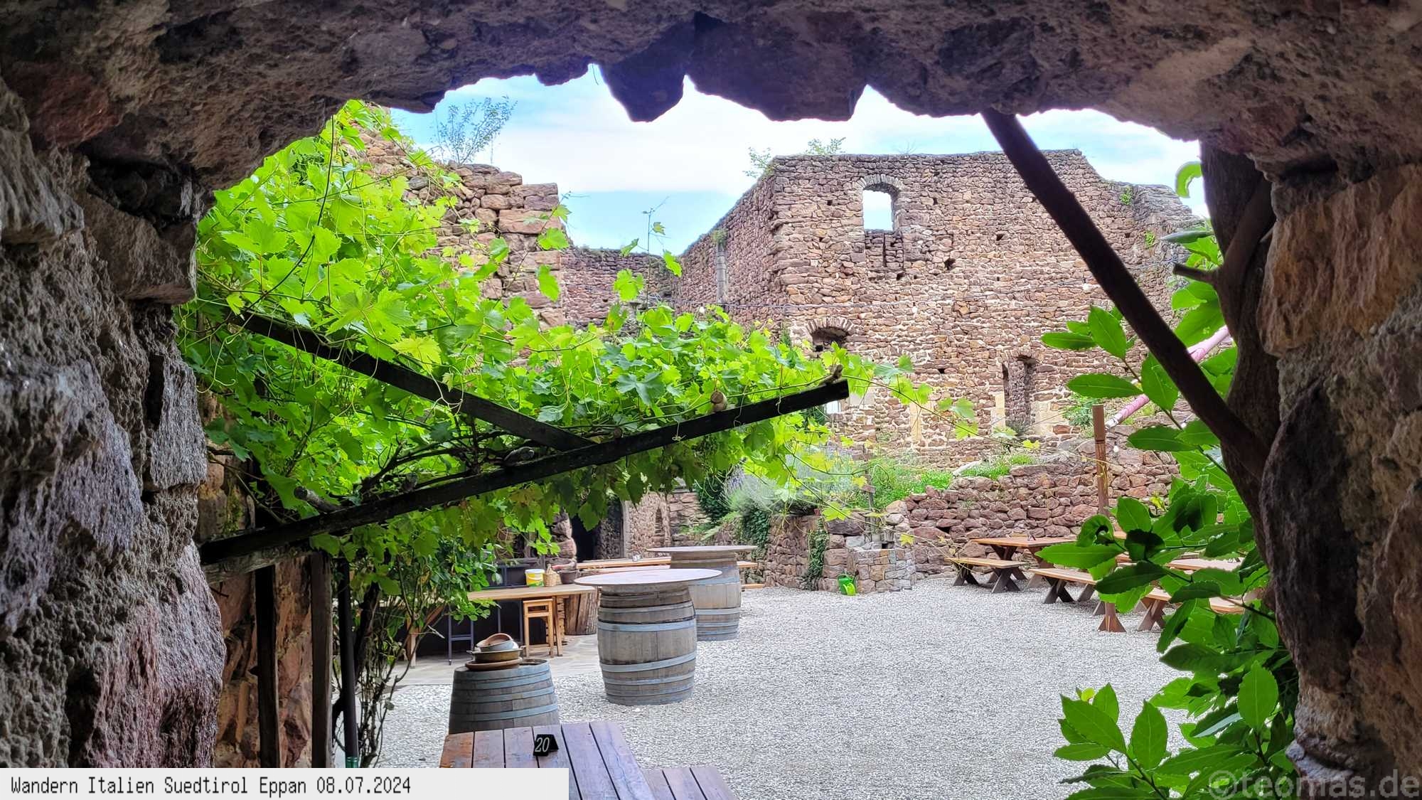 zum Kreideturm und nach Burg Hocheppan im Wald. Die Burg aus dem 12. Jahrhundert bietet heute eine Biergarten mit mittelalterlichen Flair.